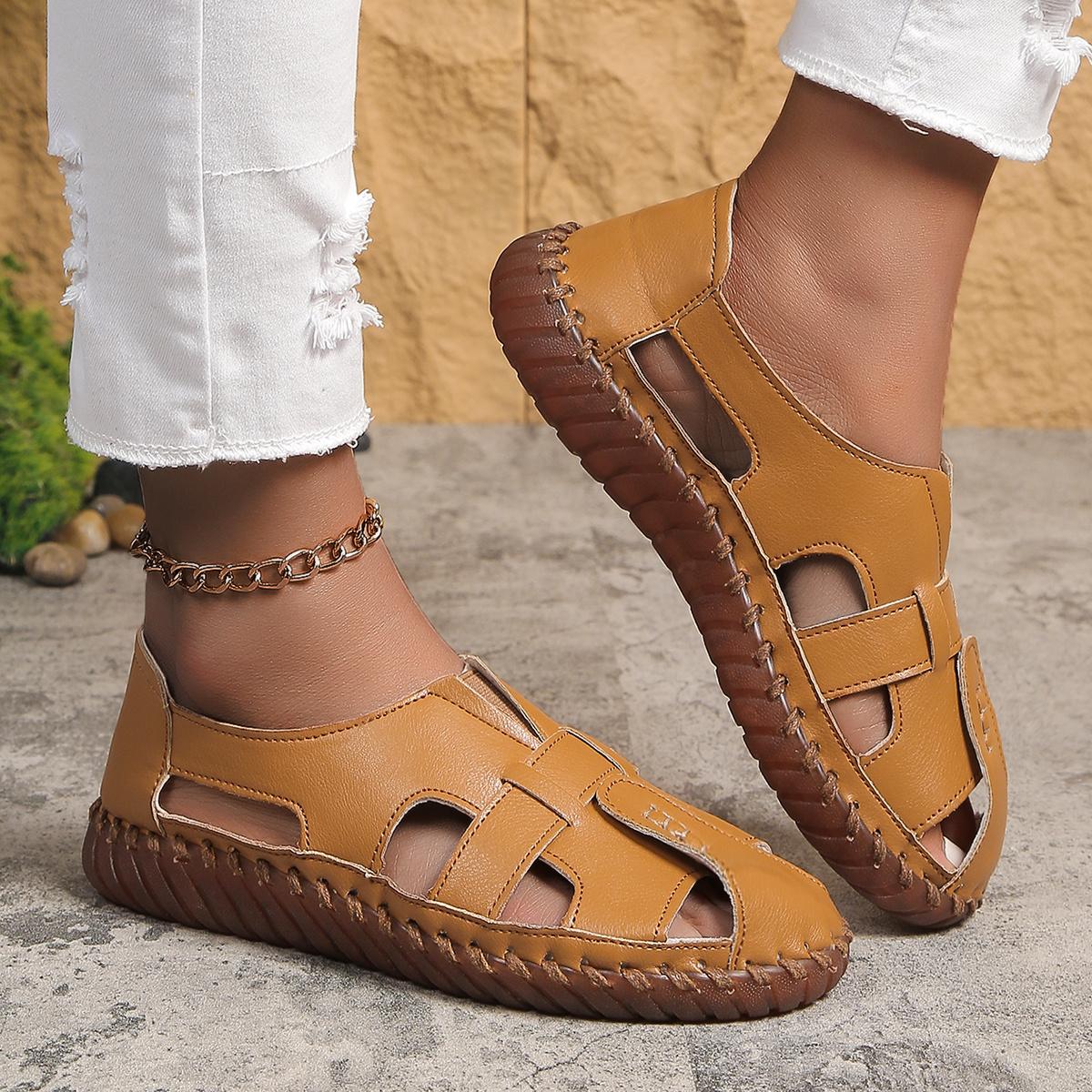 Женские сандалии на мягкой подошве, летняя женская обувь ручной работы, сандалии, дышащая однотонная женская прогулочная обувь 41