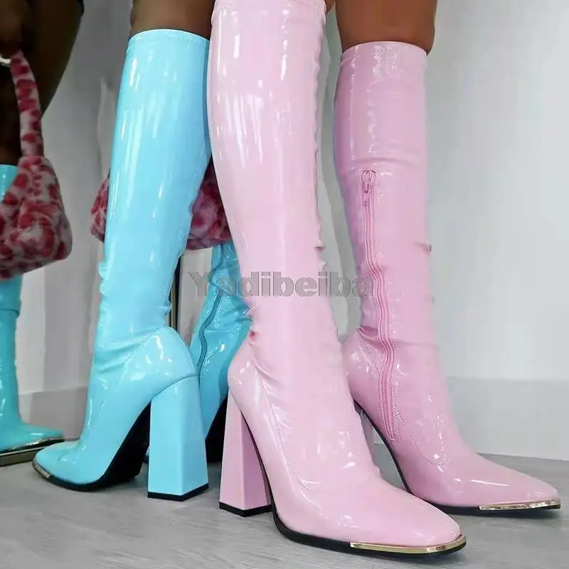Женские сапоги до колена 2021 зимняя обувь Женская Роскошная Брендовая обувь Челси Y2K женская обувь на блочном каблуке Современные Сапоги раз...