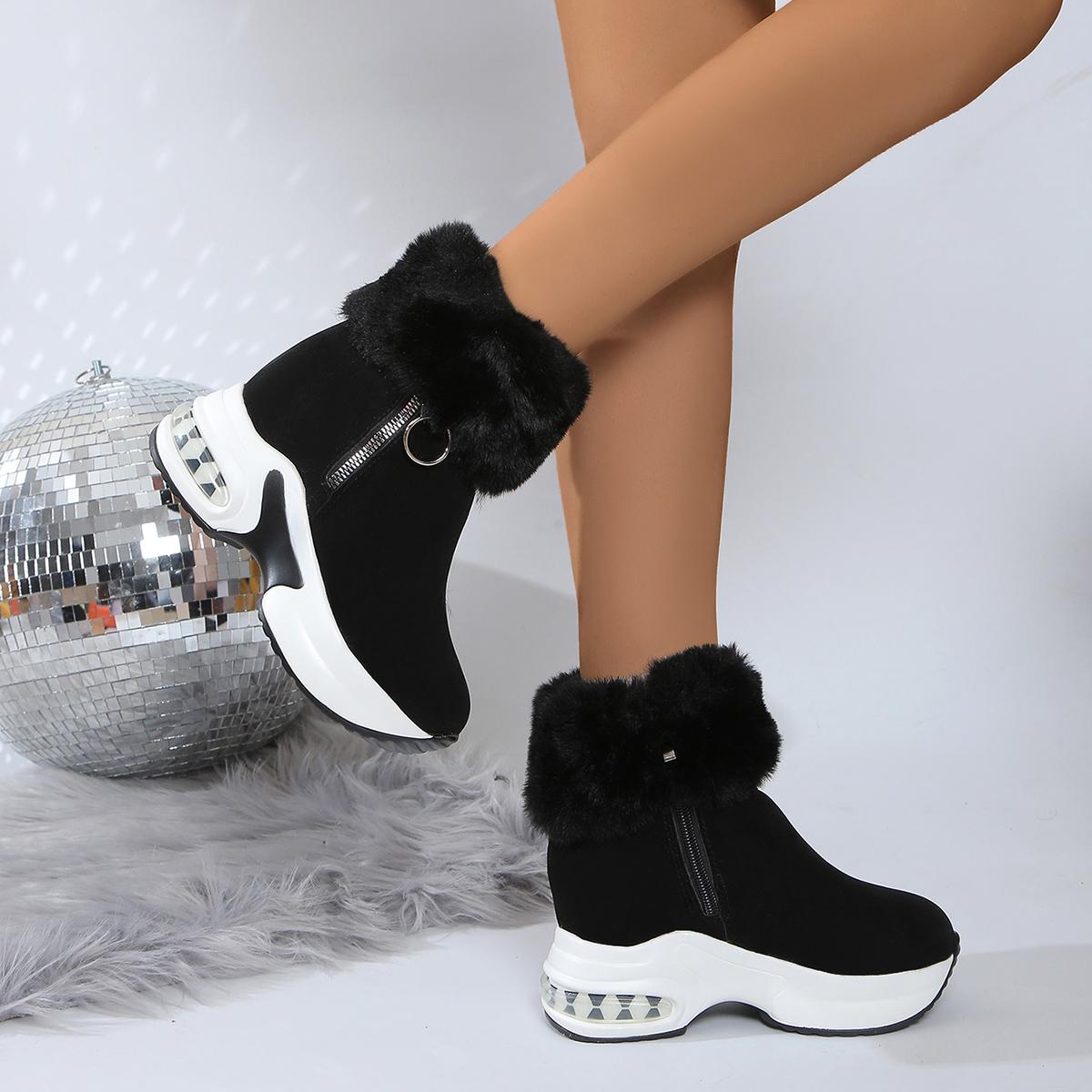 Женские сапоги, новые теплые плюшевые замшевые зимние сапоги, женская зимняя модная обувь на молнии, женские удобные сапоги до середины голени на платформе 35 серый