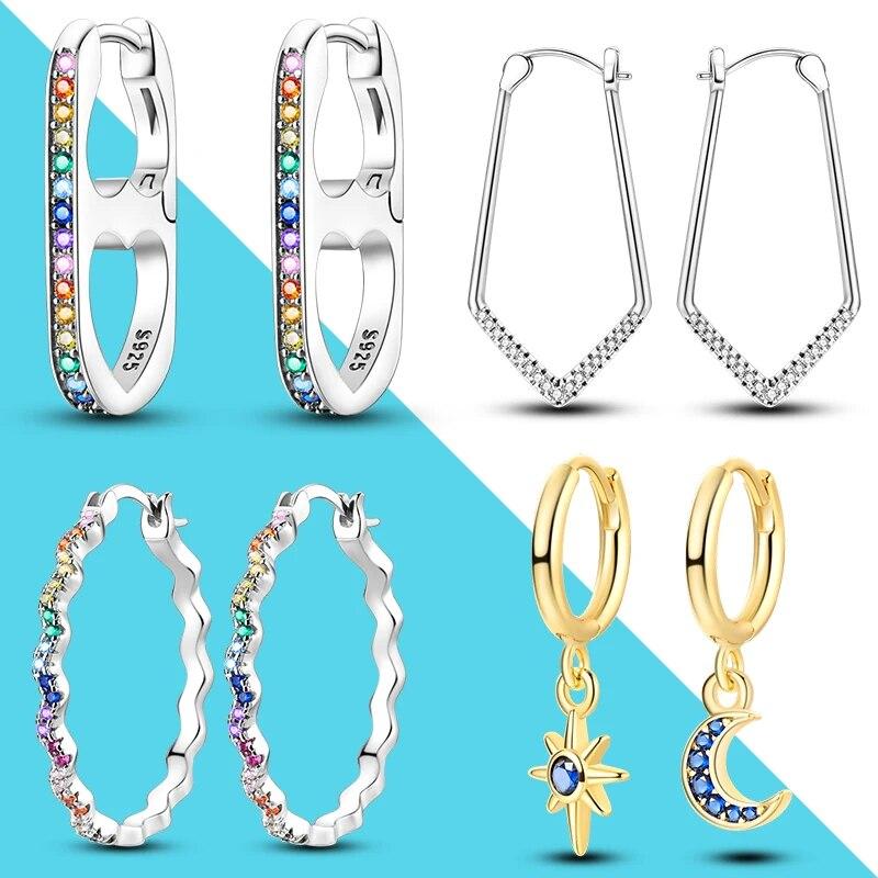 Женские серьги-кольца из серебра 925 пробы, роскошные цветные циркониевые серьги золотого цвета с луной и звездами, асимметричные тонкие серьги