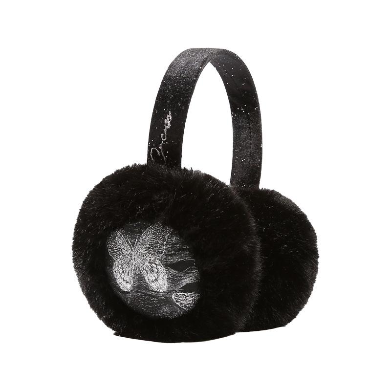 Женские складные наушники с вышивкой в национальном стиле: Ветрозащитные, Морозостойкие, Плюшевые Наушники для Осени и Зимы 12CM Diameter чёрный