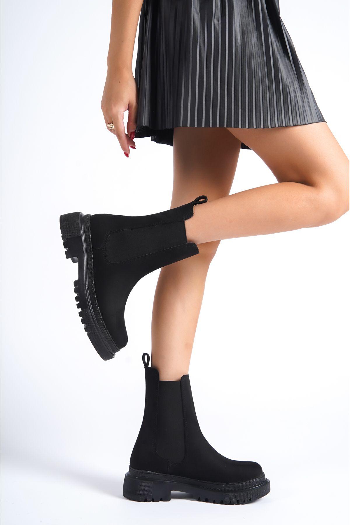 Женские современные стильные модные черные замшевые ботинки с водонепроницаемой ортопедической резинкой по бокам 36