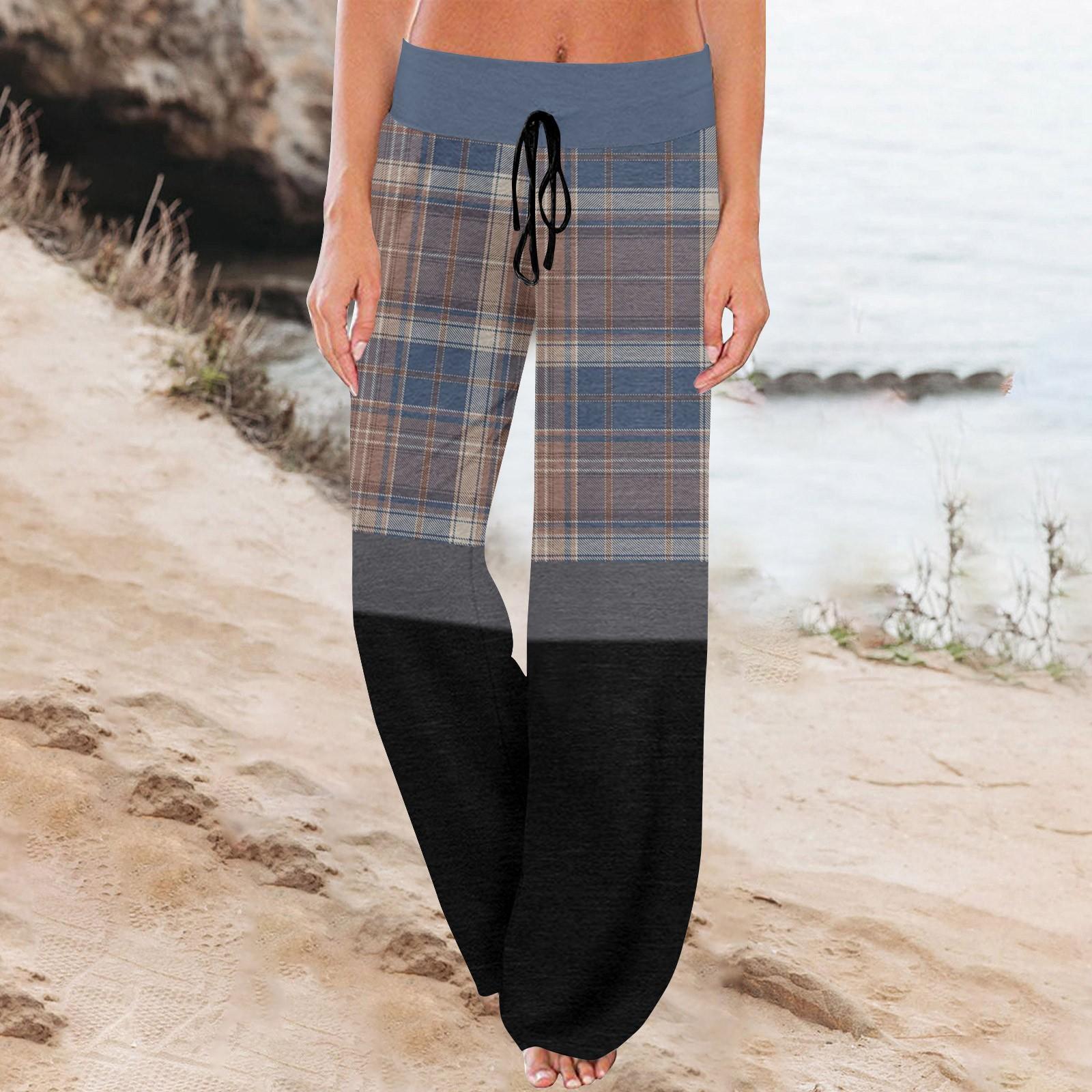 Женские спортивные брюки, спальные брюки, напечатанные широкие брюки на шнурке, повседневные брюки с карманами L чёрный