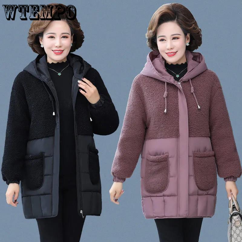 Женские стеганые куртки, осенне-зимние парки с капюшоном, женское толстое лоскутное пальто из овечьей шерсти, теплое свободное повседневное женское пальто