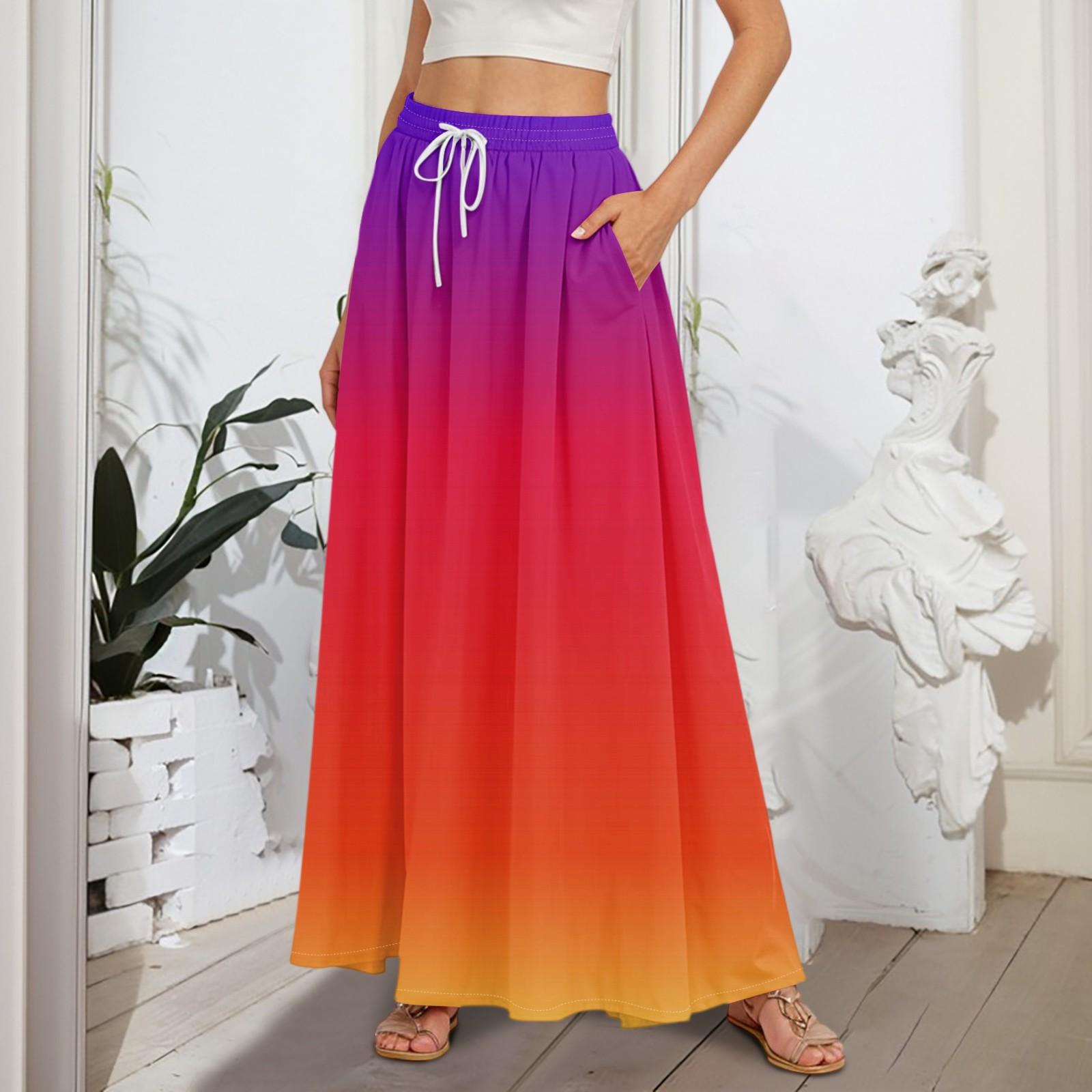 Женские струящиеся расклешенные юбки-макси с оборками и эластичным поясом, элегантные многослойные длинные юбки в стиле бохо S киноварь
