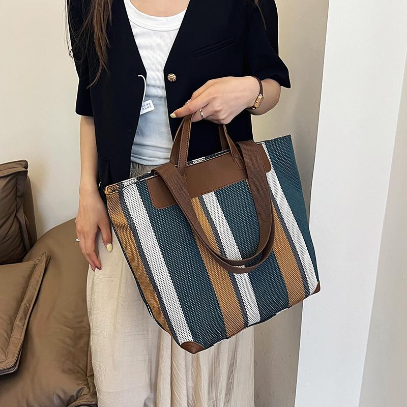 Женские сумки-ведра большой емкости в полоску через плечо, сумки-тоут для покупок, контрастные цветные сумки для поездок на работу и обратно One Size синий