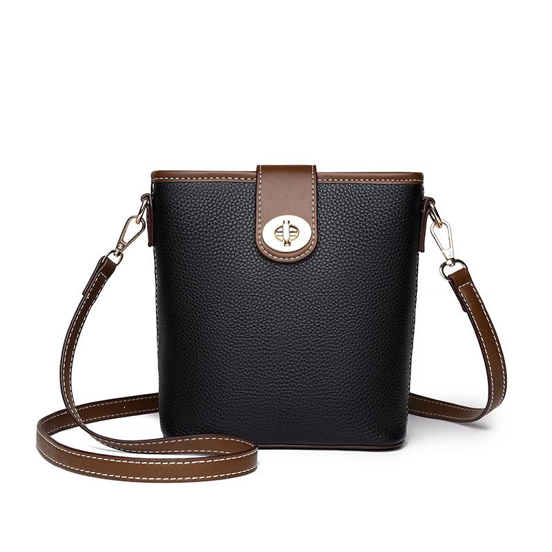 Женские сумки из натуральной кожи — модные и простые, сумки-мессенджеры на одно плечо, а сумка-ведро из коровьей кожи первого слоя — небольшого размера. чёрный