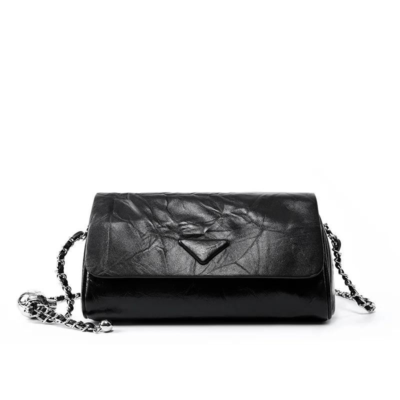 Женские сумки через плечо из натуральной кожи, верхний слой из коровьей кожи, цилиндрическая сумка, черная цепочка, царапающая руки, мягкая на плечо, новая