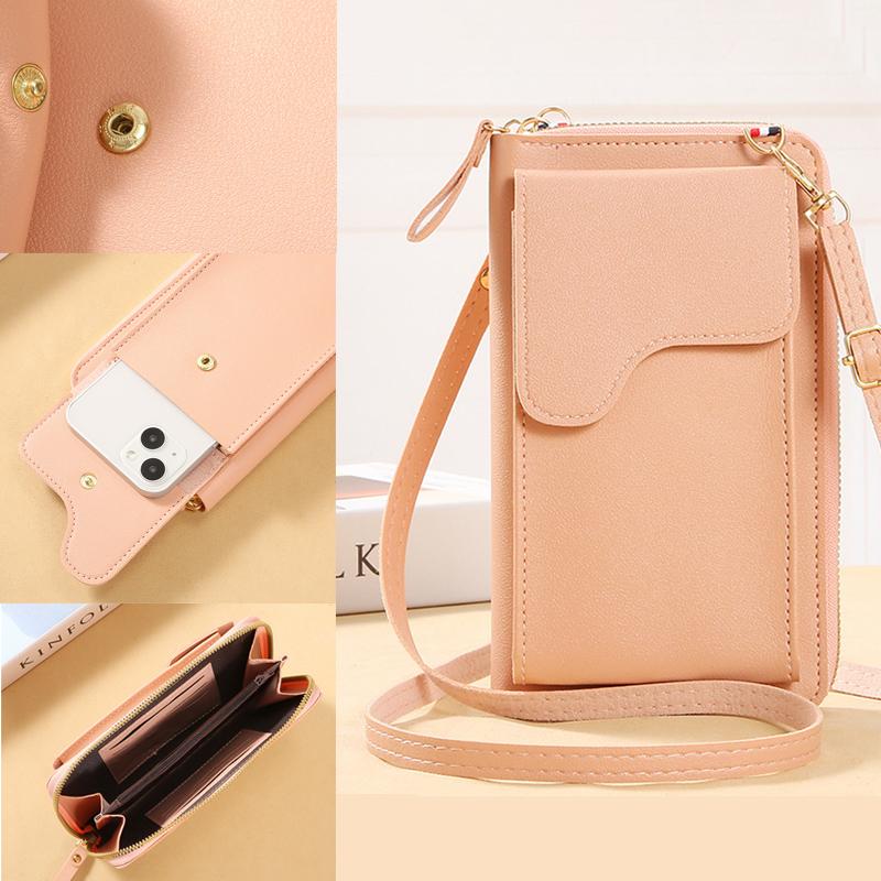 Женские сумки через плечо, кошельки с сенсорным экраном, кошелек для мобильного телефона, сумка из мягкой кожи с ремешком для женщин, роскошные сумки-мессенджеры розовый