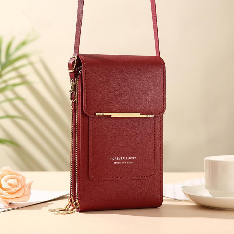 Женские сумки через плечо, кошельки с сенсорным экраном, кошелек для мобильного телефона, сумка из мягкой кожи с ремешком для женщин, роскошные сумки-мессенджеры A вино красного