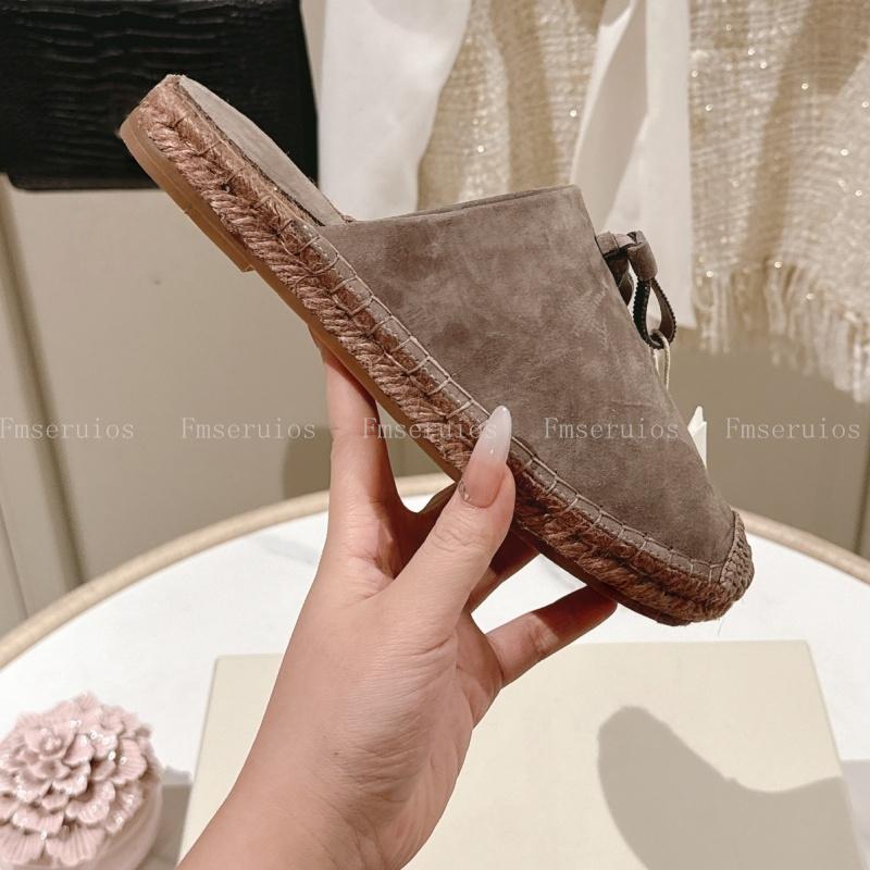 Женские тапочки Повседневная обувь Ретро стиль Круглый носок Балетки Плетеные мюли Слипоны Обувь для ходьбы Простые летние модные шлепанцы На каждый день 42 темные хаки