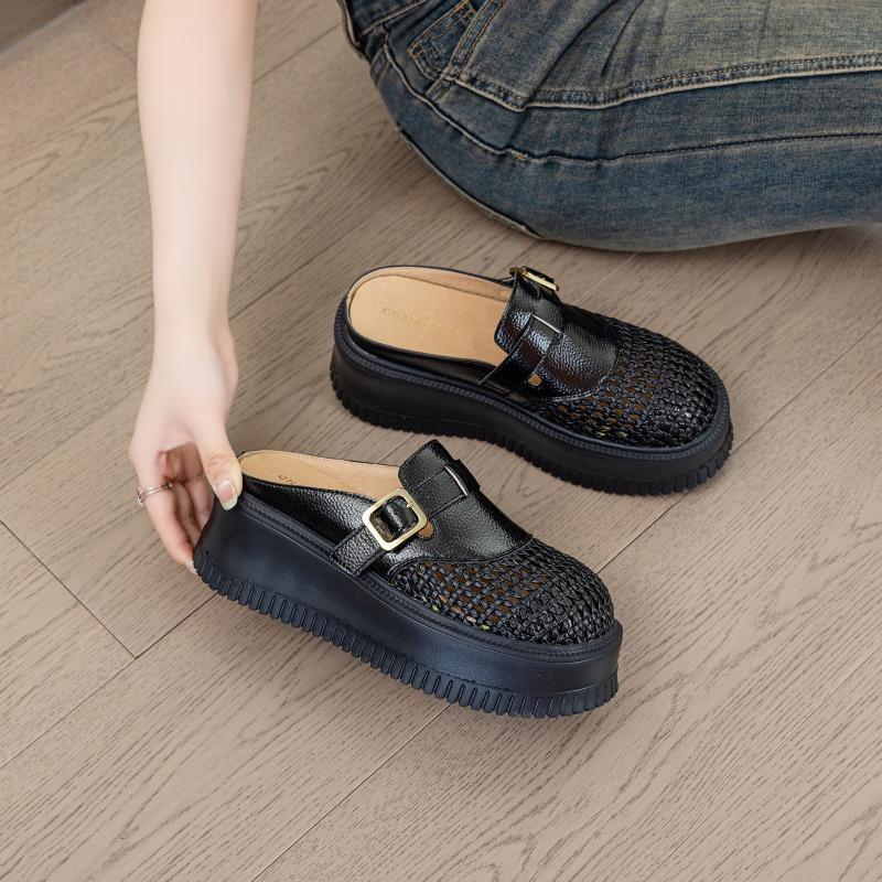 Женские тапочки, летняя новая универсальная обувь с отверстиями, толстая подошва, закрытый носок, полуподдержка, летние уличные сандалии 34 чёрный