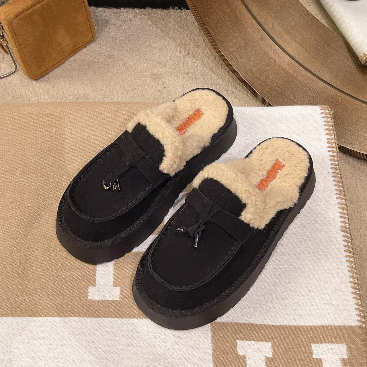 Женские тапочки на толстой подошве с мехом, уличные теплые осенне-зимние сапоги для снега, повседневные 34EU/CN35 чёрный