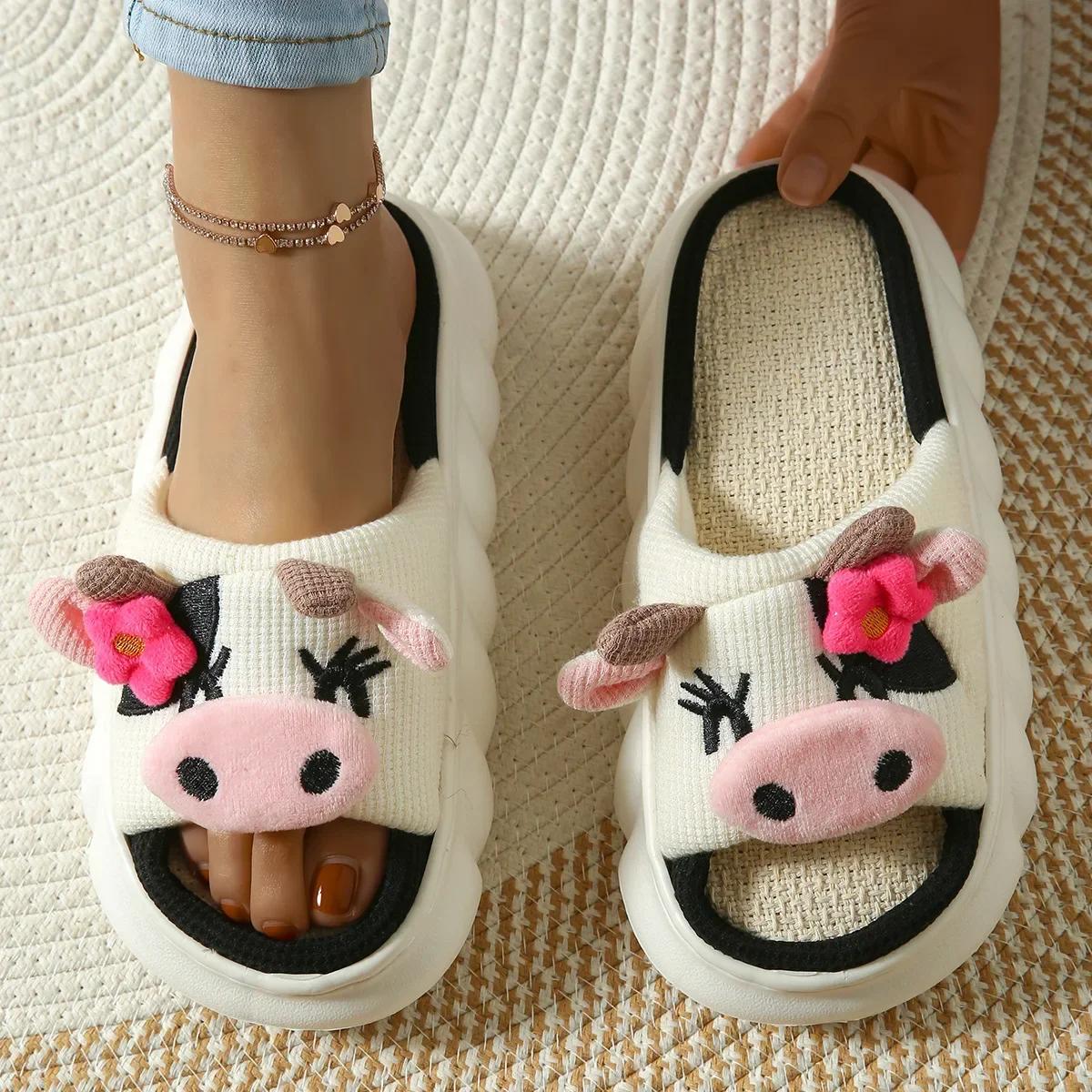 Женские тапочки с мультяшной коровкой, осенние мягкие домашние тапочки на платформе, милые мягкие подошвы, женские тапочки, нескользящие тапочки Cloud Slides 40-41 белый