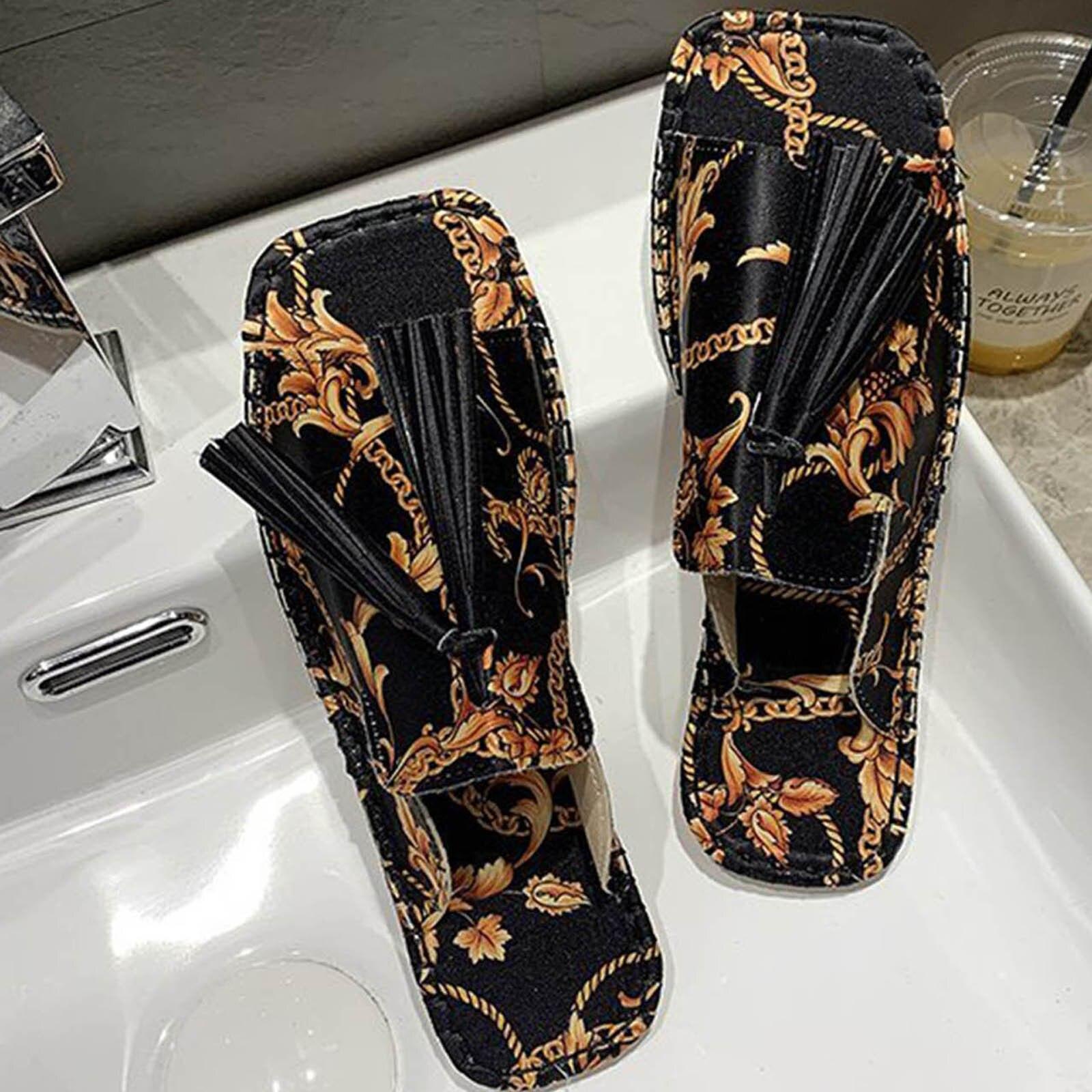 Женские тапочки, уличные сандалии, модные сандалии и тапочки на плоской подошве с цветочным декором и кисточками хорошего качества 39 чёрный