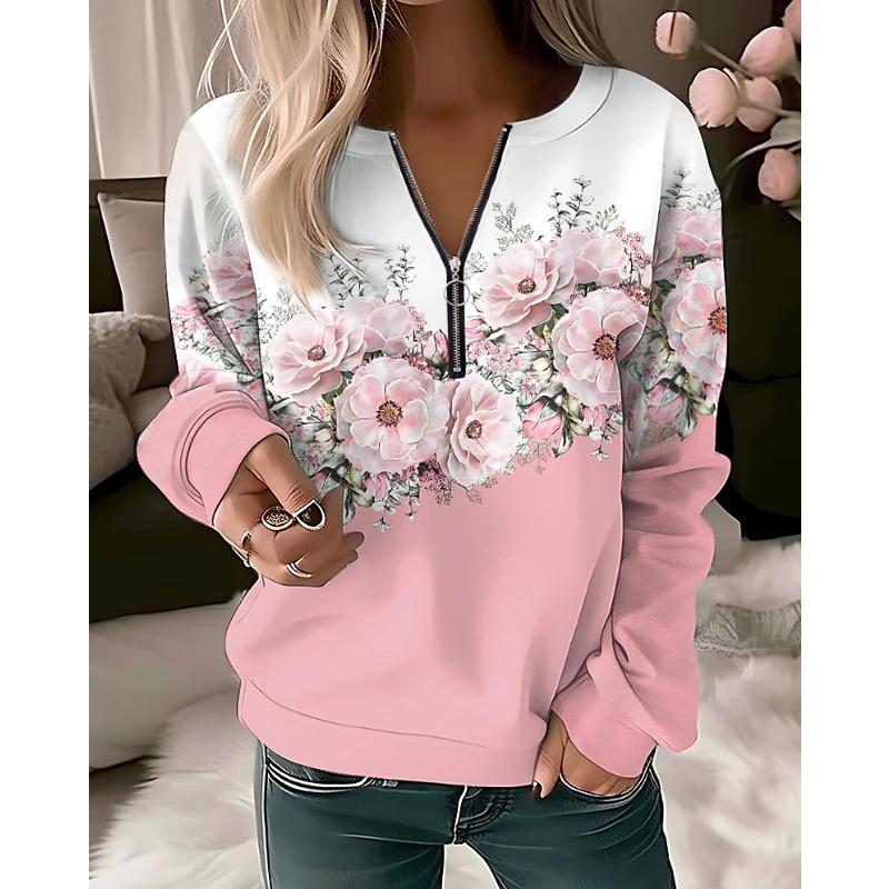 Женские толстовки с капюшоном Женская мода Цветочные толстовки Цветочная живопись Толстовка с капюшоном на молнии Большие размеры Sudaderas Harajuku Пальто Элегантные S