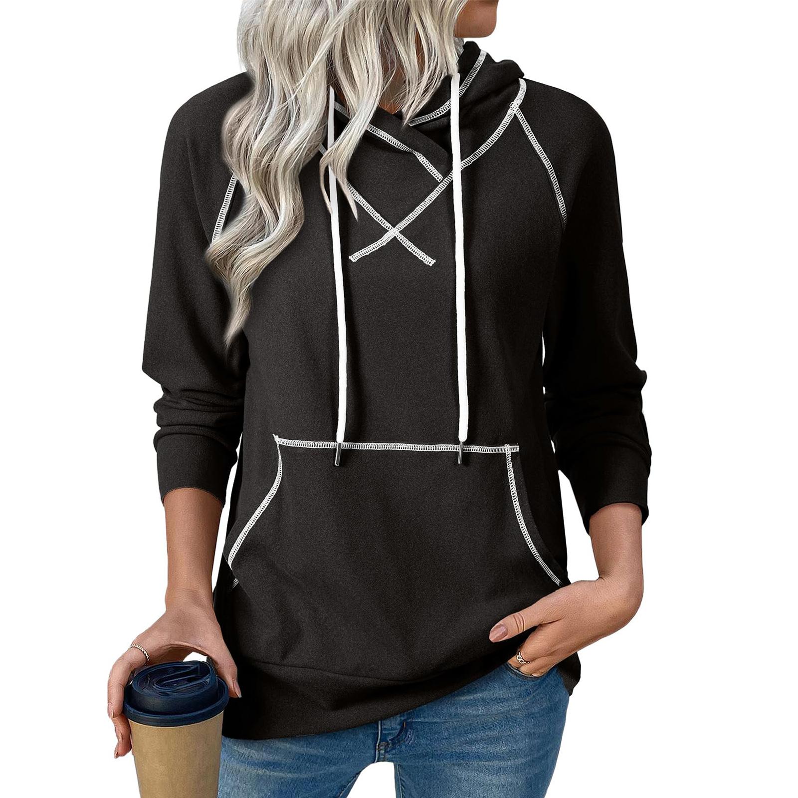 Женские толстовки с капюшоном на шнурке, пуловер, топы с длинным рукавом, женская осенняя мода S чёрный