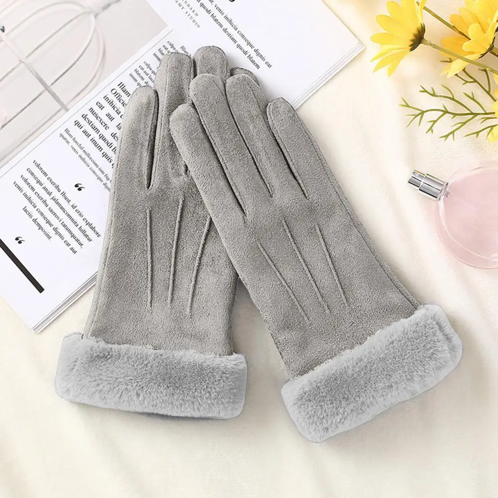 Женские толстые плюшевые теплые перчатки на запястье с пальцами для сенсорного экрана для вождения Зимние теплые плюшевые толстые черные рукавицы на весь палец для велоспорта