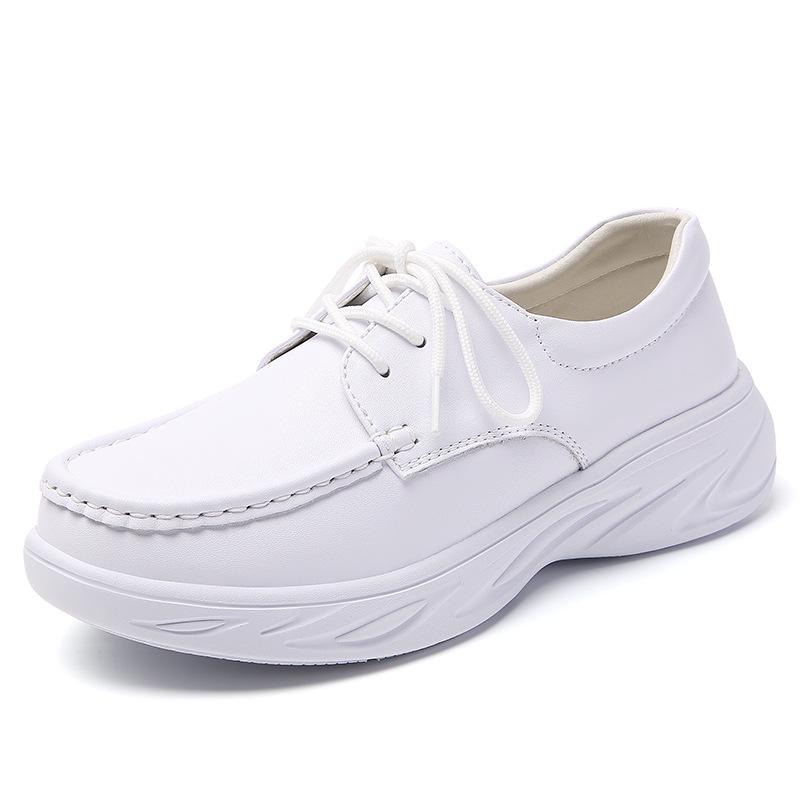 Женские туфли медсестры из натуральной кожи на шнуровке - Мягкая подошва, Нескользящие, Дышащие и Удобные для работы в больнице 37 белый