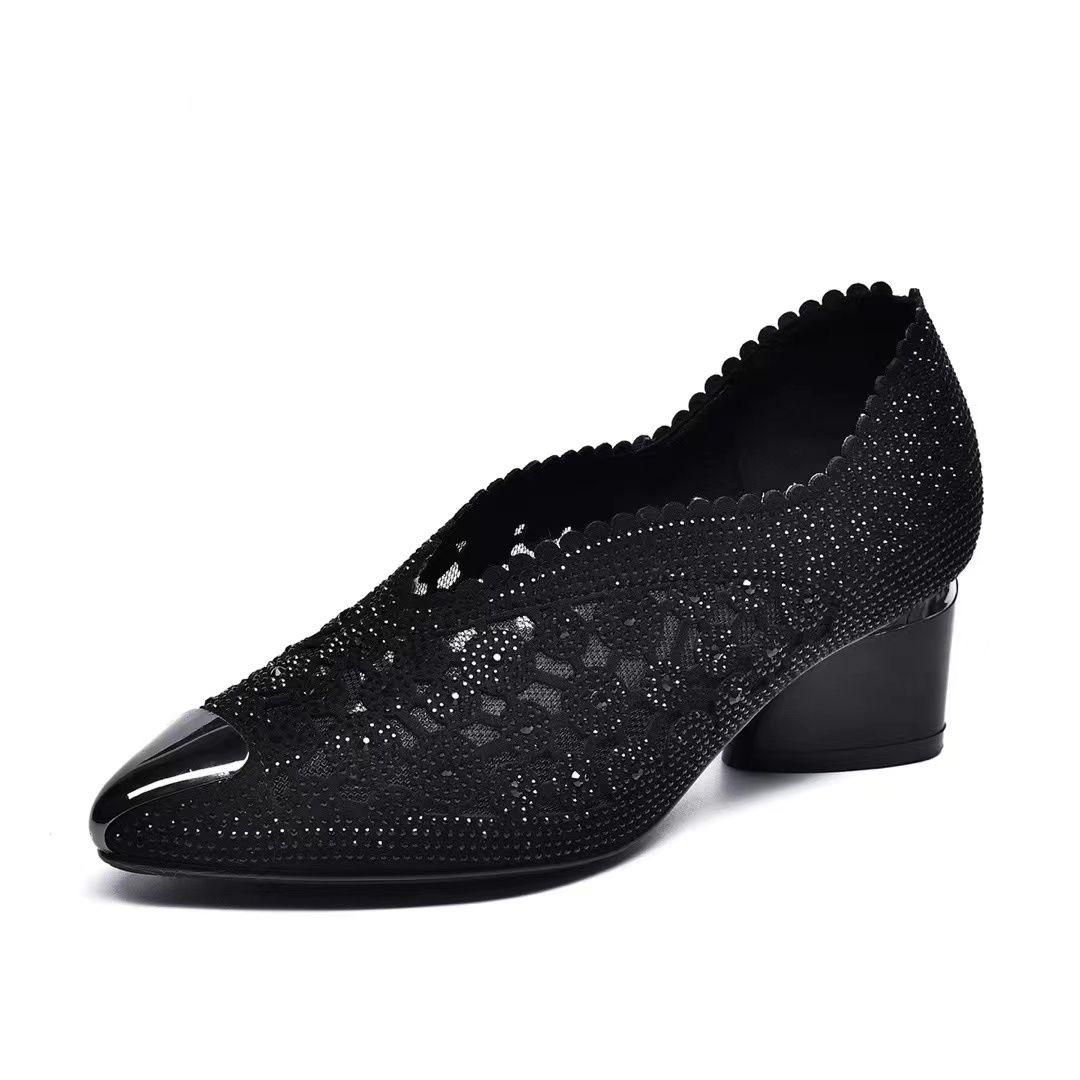 dress shoes 2021 women rhinestone buckle pointed toe pumps suede leisure high heels boat wedding tenis feminino, Black