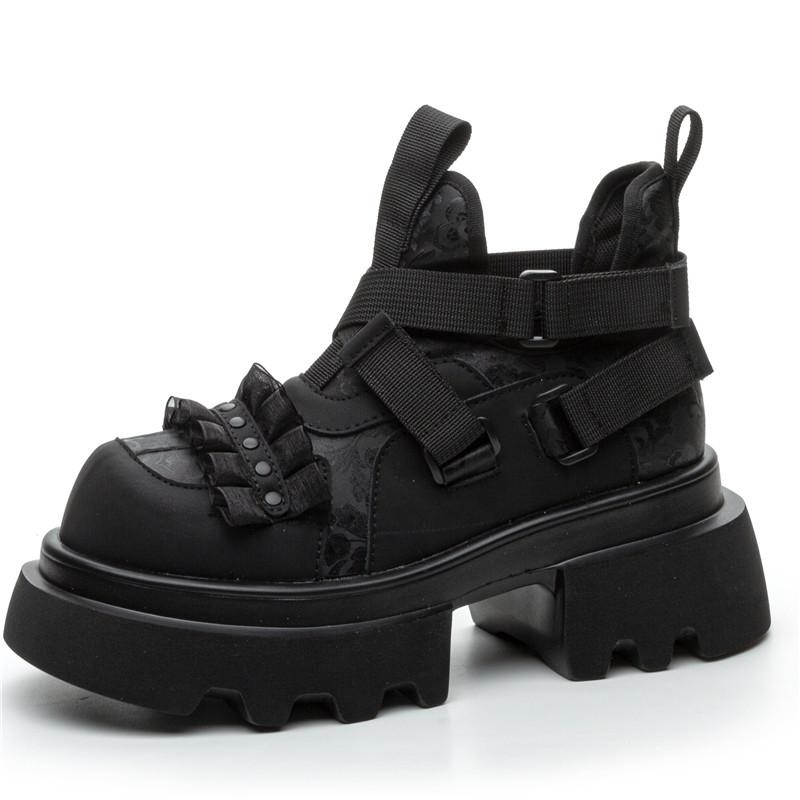 Женские туфли на платформе для косплея, высокие, на толстом каблуке, из кожи, в стиле рок-панк, темные Мэри Джейн на платформе 40 чёрный