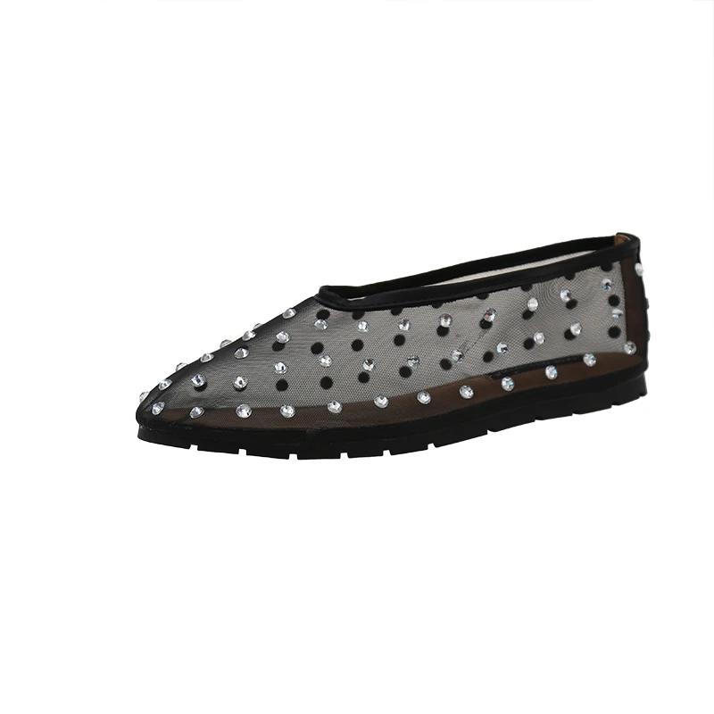 Женские туфли на плоской подошве Верх с сетчатой окантовкой Стразы Мягкая подошва Обувь Женское платье Дышащий Сказочный стиль Обувь женская 42 чёрный