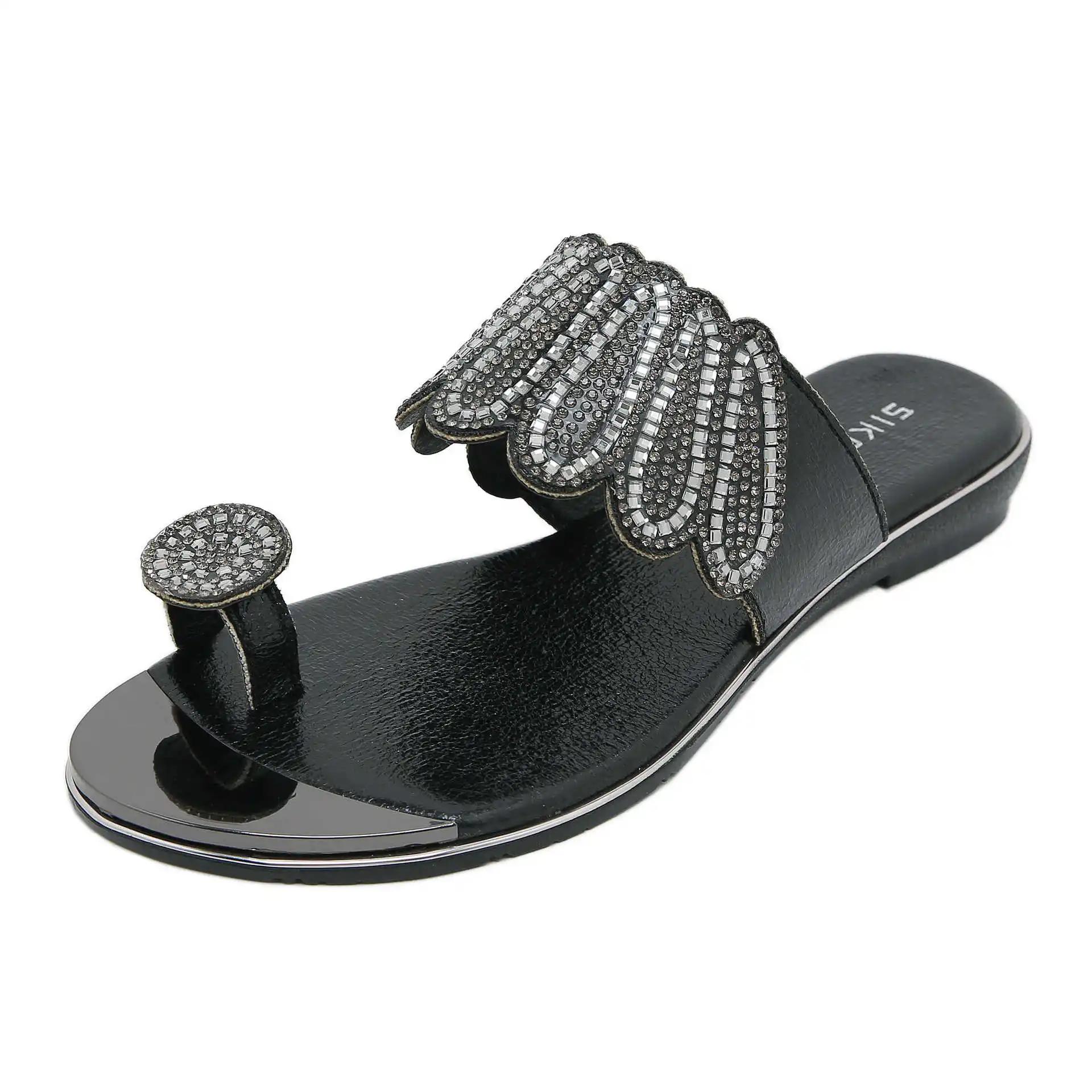 Женские туфли на плоской подошве со стразами, шлепанцы с застежкой-клипсой, женские летние пляжные тапочки с открытым носком, уличные сандалии с открытой пяткой, трендовая обувь для ходьбы 42