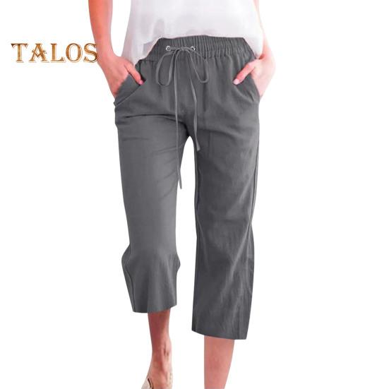 Женские укороченные брюки, однотонные, свободного кроя, длиной до середины голени, с эластичным поясом, повседневные брюки для поездок на работу M армия зеленый