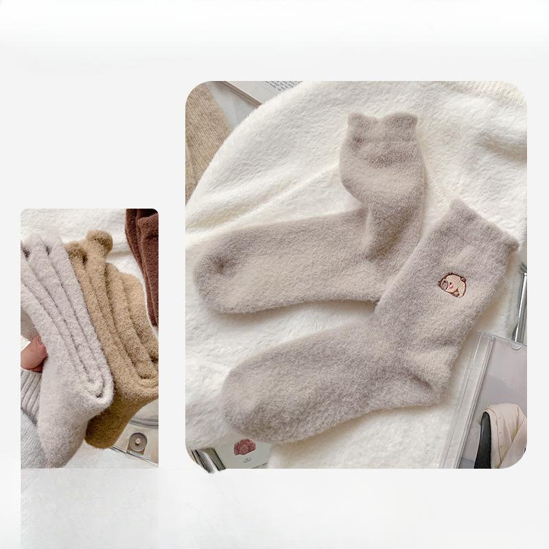 Женские утолщенные милые носки-трубы с мультяшной вышивкой для сна на осень и зиму 1 pair