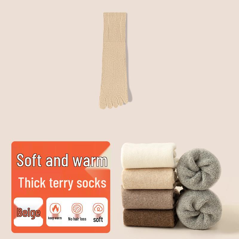 Женские флисовые носки до середины икры с пятью пальцами - Толстые, теплые, устойчивые к запаху, с раздельными пальцами, осенне-зимний стиль One Size