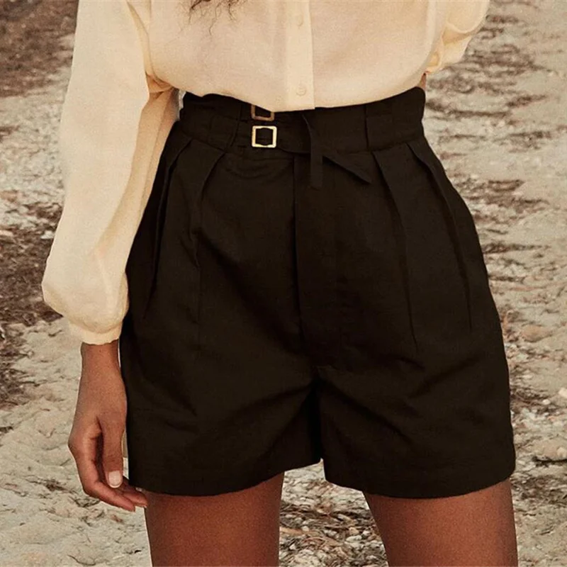 Женские черные Костюмные шорты, новинка 2021, летняя облегающая офисная одежда с завышенной талией, простая Женская одежда с карманами