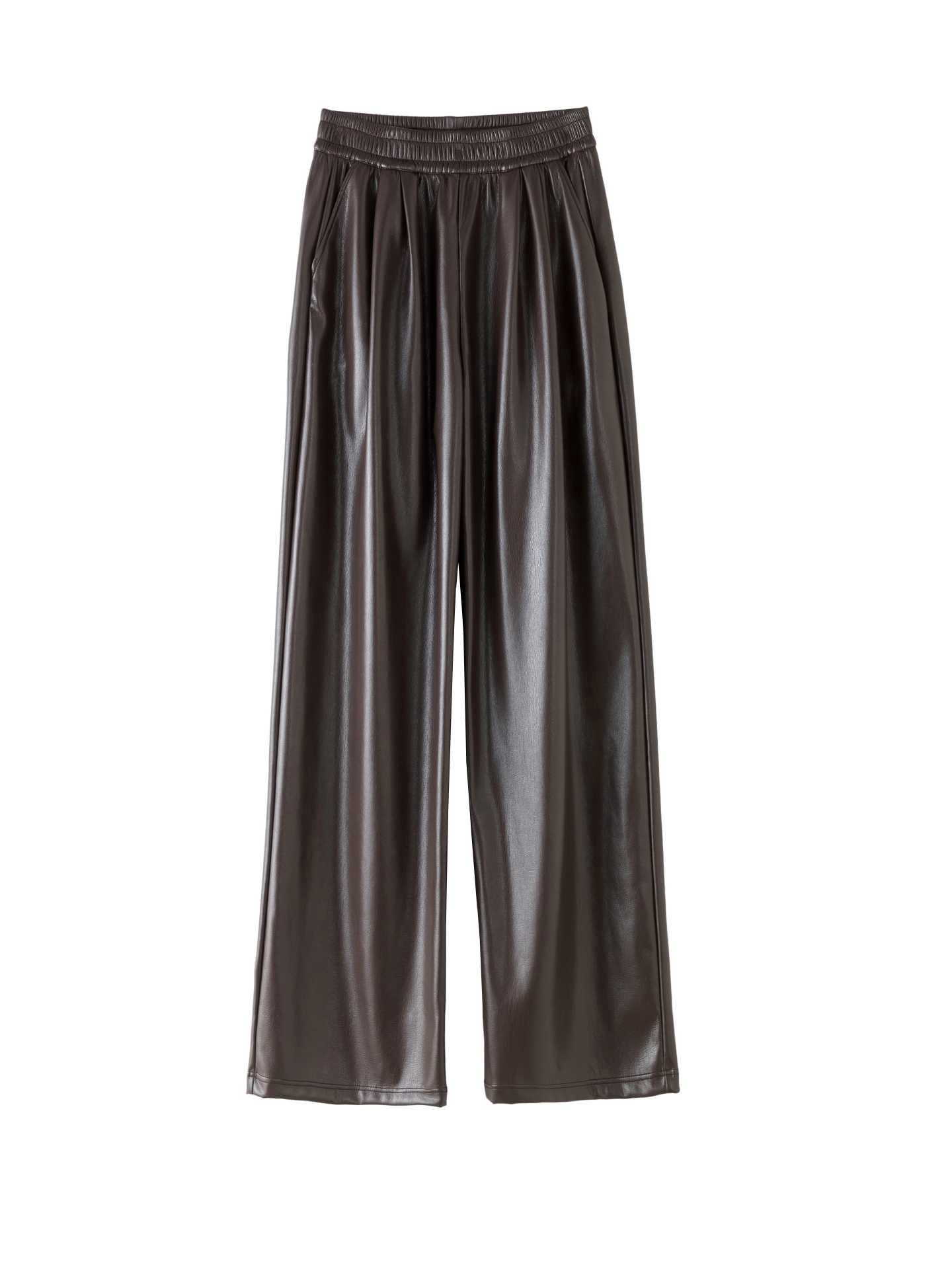 Женские черные брюки палаццо из искусственной кожи премиум-класса: Эластичная талия, Свободный крой, Стройнящий, Ветрозащитный, Длина до пола для зимы. M (90-115 lbs)