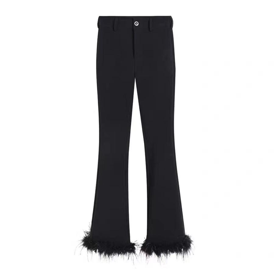 Женские черные расклешенные брюки с высокой талией и перьями страуса — выпуск осень 2023 г. Large чёрный