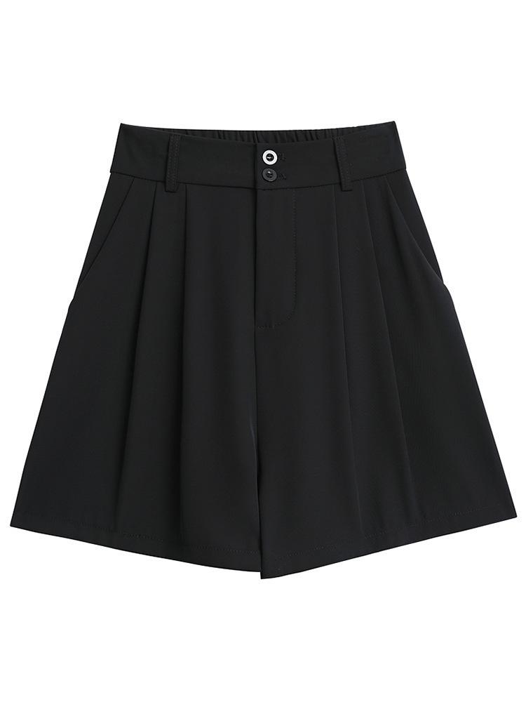 Женские черные шорты с высокой талией и широкими штанинами для повседневной носки - Облегающий крой, Защита от просвечивания, Осенний стиль, Маленький размер 4XL чёрный