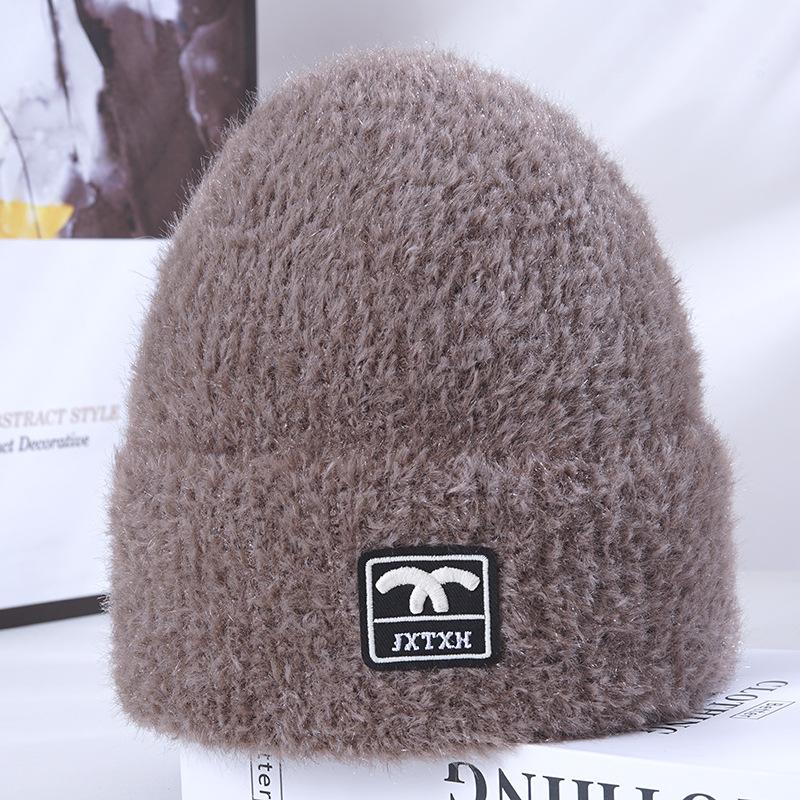 Женские шапки для женщин зимняя утолщенная теплая вязаная шапка корейский стиль трендовая плюшевая защита головы и ушей ветрозащитная шерстяная шапка