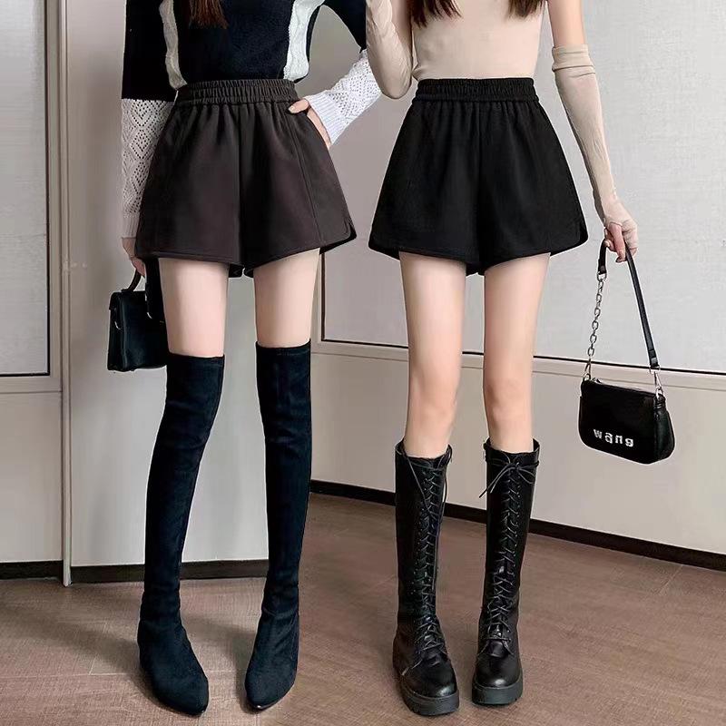 Женские шерстяные шорты А-силуэта с высокой посадкой, черные - Осень/Зима 2025, повседневные, маленького размера, облегающие бедра M кофейный