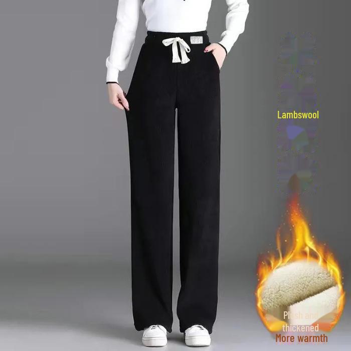 Женские широкие вельветовые брюки из овчины и синели с бархатной подкладкой — теплые, плотные, больших размеров для осени и зимы. Medium чёрный