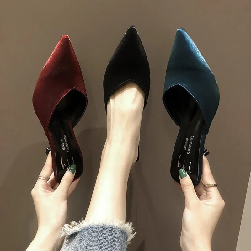 Женские шлепанцы на высоком каблуке, элегантная темпераментная весенне-осенняя модная верхняя одежда Baotou на шпильке, туфли Muller с острым нос...