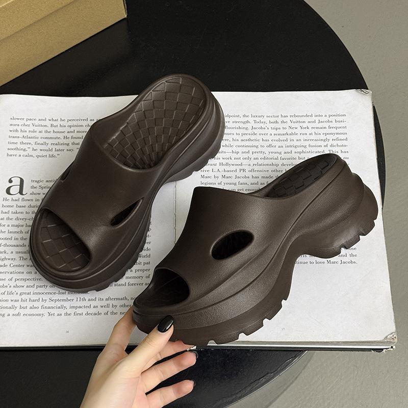Женские шлепанцы на толстой подошве с увеличением роста, 2025 новая летняя уличная обувь, ультралегкие, наступающие на дерьмо, с полыми открытыми носками, нескользящие шлепанцы 40 темно-коричневого