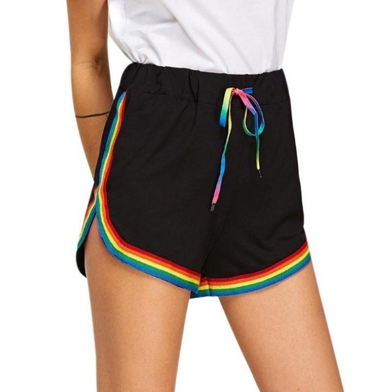 Женские шорты летние Повседневные с радужным принтом Спортивные Эластичные Короткие Пляжные Свободные Брюки S чёрный