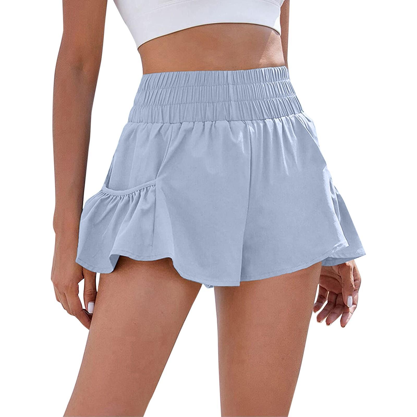 Женские шорты с высокой талией, спортивные шорты для бега, быстросохнущие брюки для тренировок в тренажерном зале, штаны для йоги, теннисные штаны, летние шорты S небесно-голубой