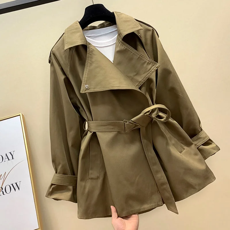 Женский Тренч с поясом, осенне-зимняя Новинка 2021, облегающая однотонная элегантная офисная Дамская верхняя одежда с отложным воротником и д...