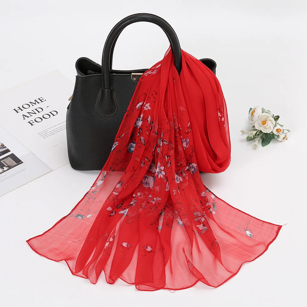 Женский Цветочный шелковый шарф, Повседневная шифоновая шаль для улицы, декоративные шарфы на шею для девушек, модное пляжное полотенце 160 с...