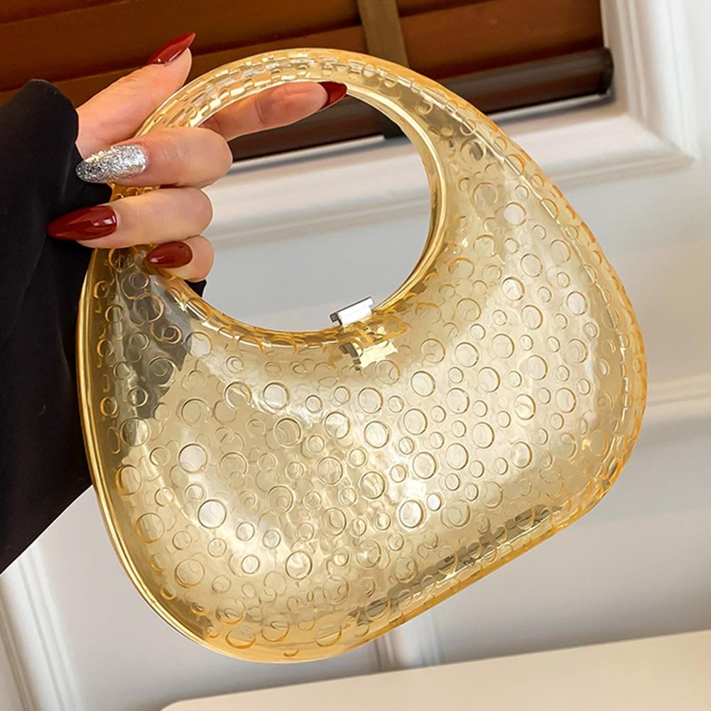 Женский вечерний клатч, однотонная изысканная сумка для ужина, прозрачная акриловая круглая сумка, практичная сумка, повседневная сумка на плечо оранжевый