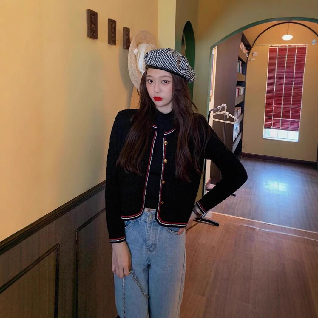 Женский вязаный кардиган в стиле колор-блок - корейский стиль, длинный рукав, коллекция осень/зима One Size чёрный
