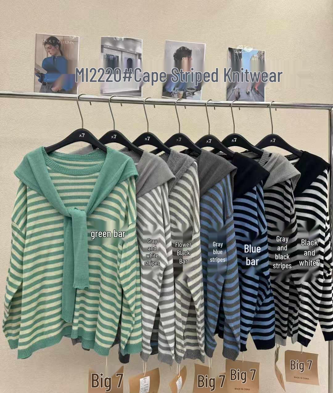 Женский вязаный полосатый комплект-шаль из двух частей большого размера - Весенний корейский стиль One Size