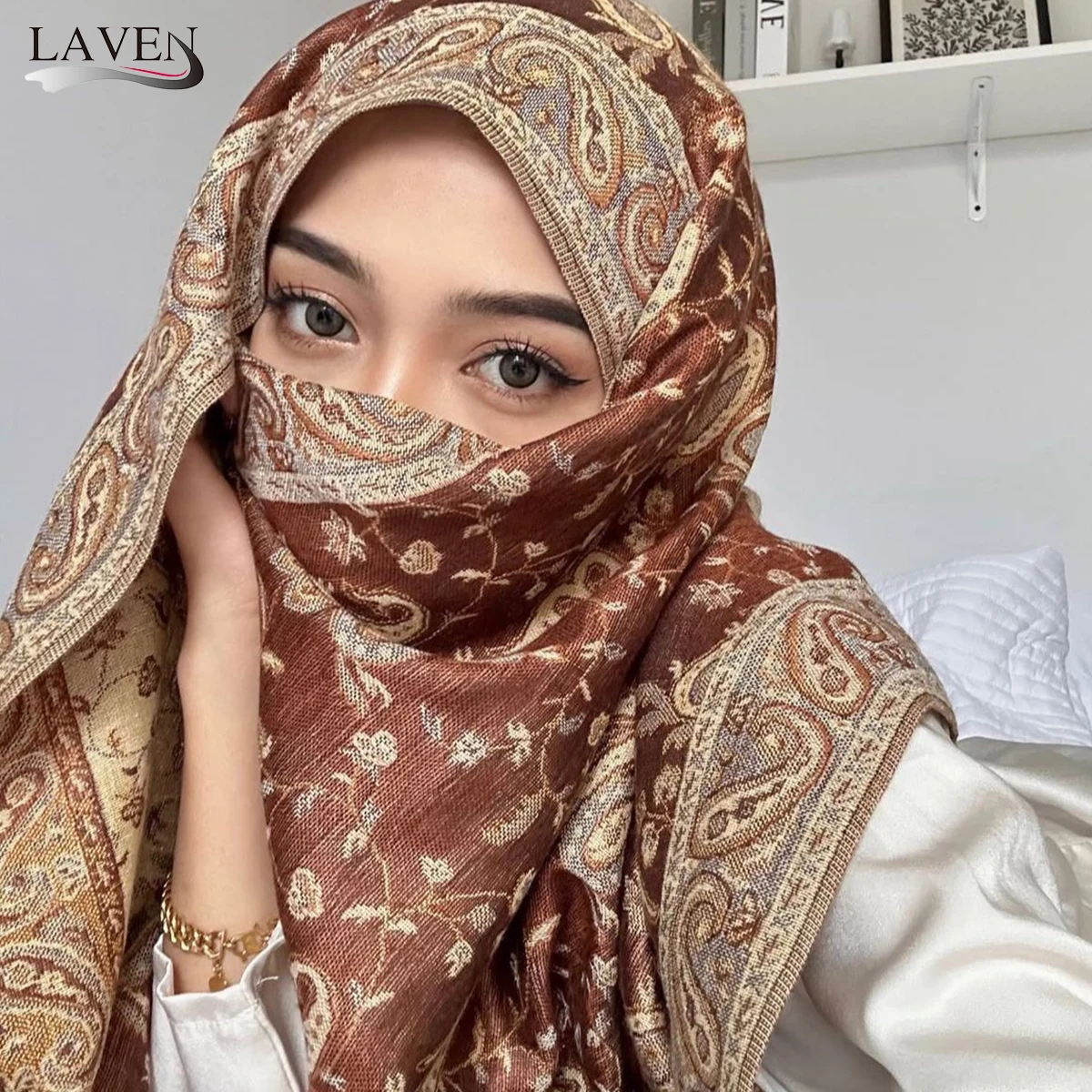 Женский жаккардовый шарф в стиле ретро, толстая кашемировая шаль с кисточками, этнический стиль, уличная зимняя теплая накидка на шею, пашмина с цветочным принтом