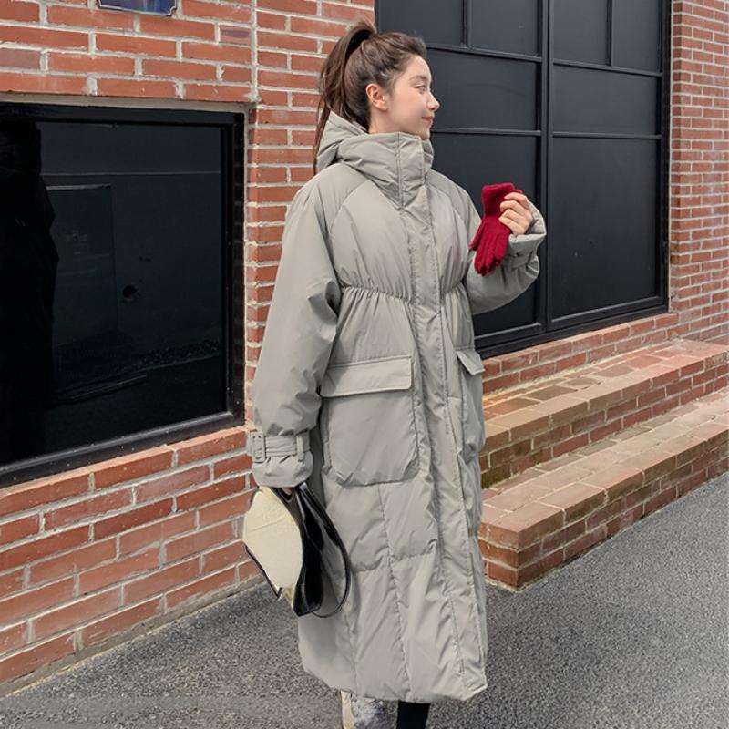 Женский зеленый пуховик с капюшоном, длинная хлопковая одежда, новая зимняя корейская мода, свободные теплые утолщенные ветрозащитные пальто большого размера, топы S чёрный