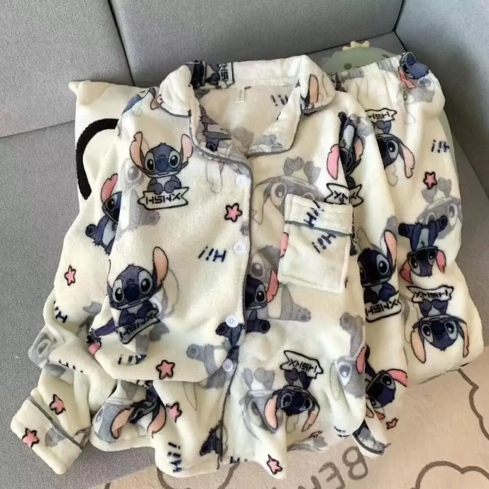 Женский зимний плюшевый пижамный комплект с мультяшной строчкой, 2022, кавайный аниме Дисней, коралловый флис, теплая домашняя одежда, милая ночная рубашка для девочек