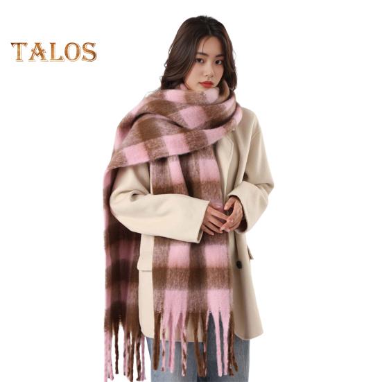 Женский клетчатый шарф, объемный, большой, зимний, шаль с кисточками, в стиле ретро, литературный, теплый, широкий шарф для женщин, подарки розовый